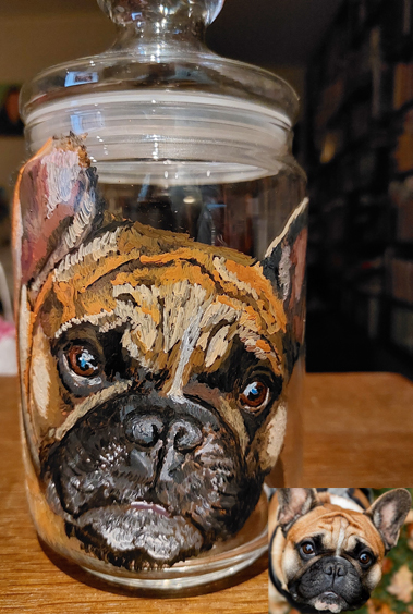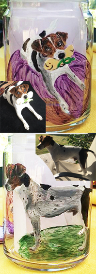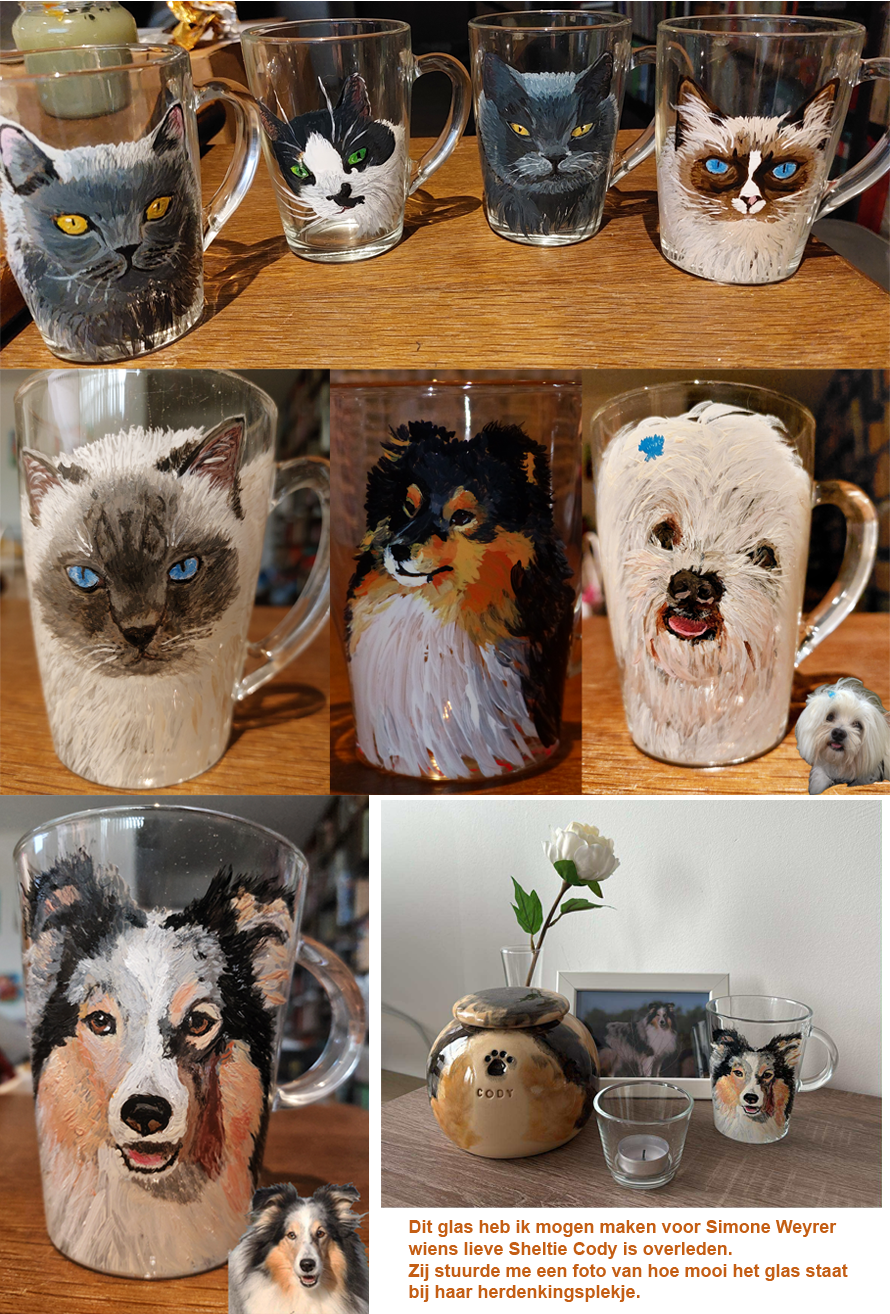Ik schilder met glasverf afbeeldingen op allerhande glazen of keramieken voorwerpen. Vervolgens worden ze gebakken in de oven en daarna kunnen ze in principe in de vaatwasser volgens de fabrikant, maar ik zou het zelf liever met de hand afwassen. U kunt foto's of andere plaatjes naar mij mailen of me een bepaald onderwerp sturen waar ik dan een ontwerp van maak. Om een beetje een indicatie te krijgen van de prijzen, ziet u hieronder wat voorbeelden. De genoemde prijzen zijn exclusief verzendkosten. Na goedkeuring van het ontwerp stuur ik u een betaalverzoek en als het geld op mijn rekening staat, ga ik aan de slag. Vervolgens stuur ik u een foto van het resultaat en als u daar tevreden over bent, stuur ik het naar u op, of eventueel kunt u het komen afhalen in Swifterbant (Flevoland). |