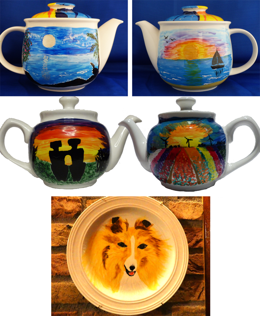 Keramieken voorwerpen kosten enkelzijdig 35 Euro en aan twee kanten beschilderd 50 Euro. |